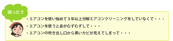 エアコン内部には室内で発生する汚れ(カビやホコリ等)や外部から流入する汚れが付着しています。