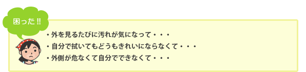 当店では小さなこびりつき汚れまで丁寧に落とします。ガラス面だけあるいはサッシだけといったご要望にも対応致しますのでお気軽にお問合わせください。
